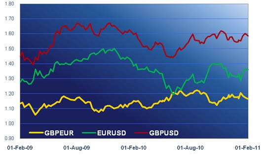Nevertheless, the market is convinced that a rate increase is on the way. That is perhaps why they totally ignored the announcement of a record UK trade deficit in December. Sterling did not even flinch. In fact it had a fairly successful day, holding its own against the US dollar and edging higher against everything else except the euro, where it lost quarter of a cent. The principal mood on Wednesday was one of heightened caution. Equity prices were subdued and the commodity dollars moved lower, partly as a result of China’s interest rate increase the previous day. The euro’s relative success seemed accidental. If anything, news that Bundesbank president Axel Weber had withdrawn his candidacy to replace Jean-Claude Trichet at the European Central Bank ought to have depressed the euro. Herr Weber, who will be retiring, has been one of the ECB’s most vocal policy hawks and his departure will be seen as softening the ECB’s stance.